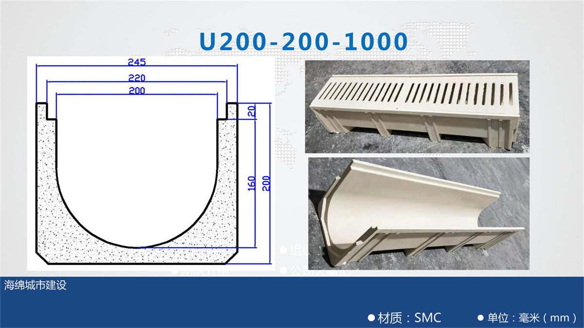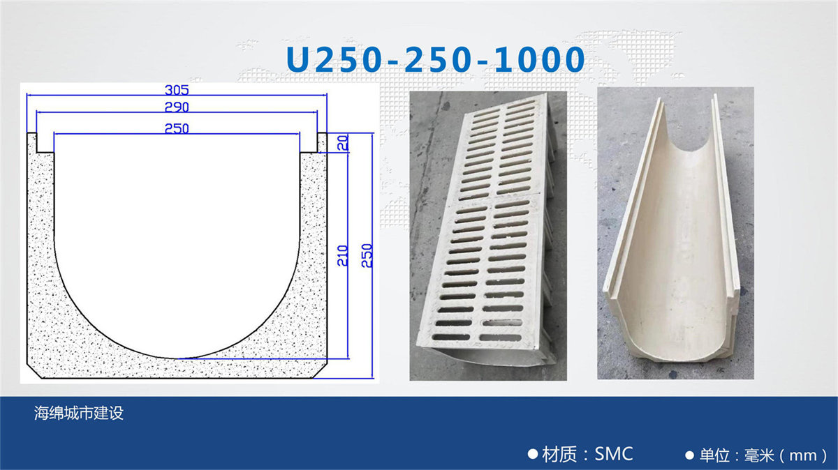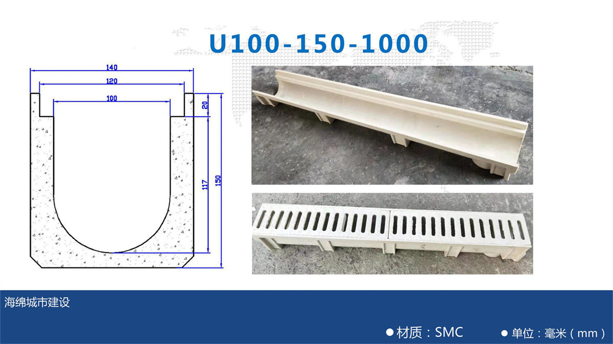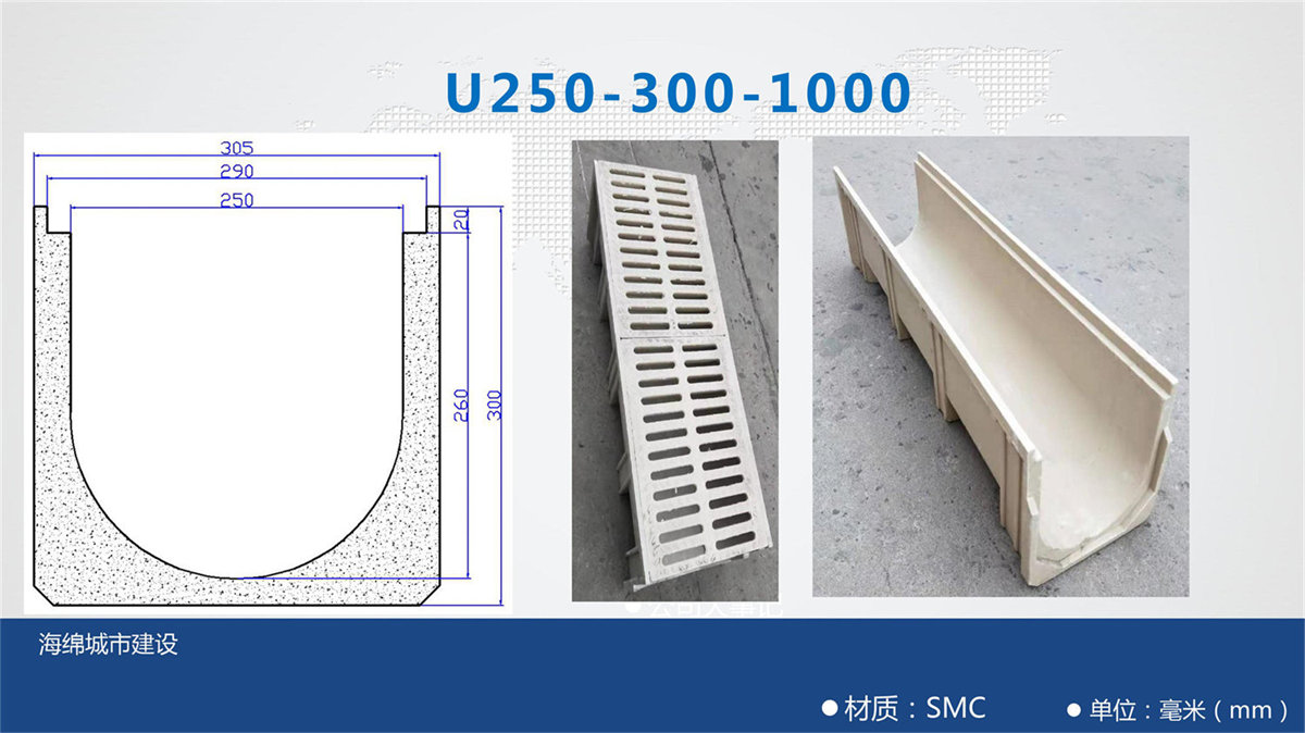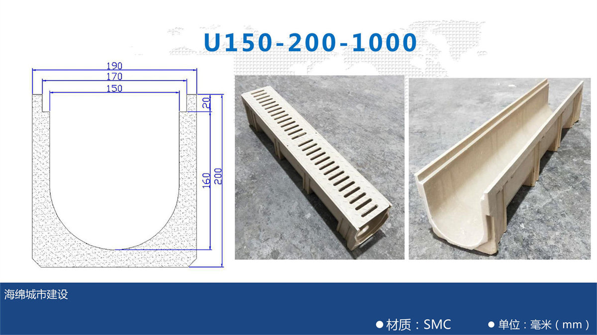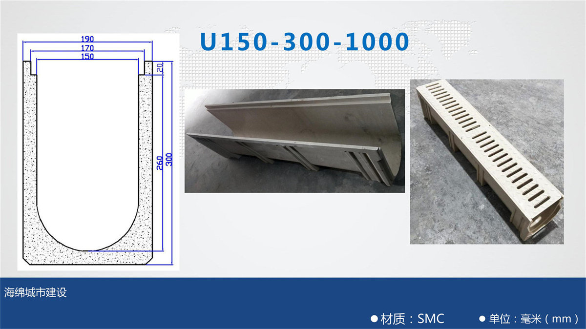 樹脂溝每段長度為一米,兩端留有對扣卡槽方便安裝。樹脂蓋板每塊長度為50公分。